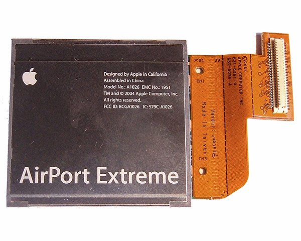 Built in Airport extreme (802.11g) card with integral flex cable for the 1.67GHz single layer superdrive (A1107) model of 17" Aluminium PowerBook G4 only.